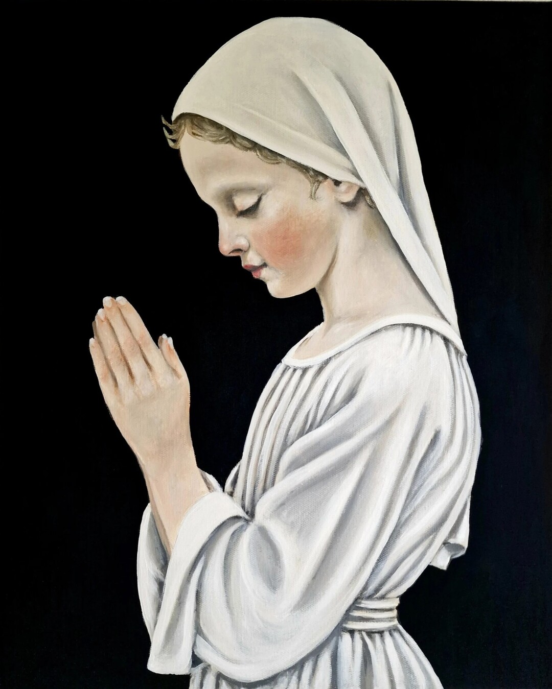 Trust depicts a child set against stark contrasts of light and dark, evoking a primordial form of trust that has not yet been tested. Rather than naïveté, the work suggests an inner balance sustained by the coexistence of darkness and light. Zucker describes it as a quiet image that “holds,” functioning like an inner anchor.