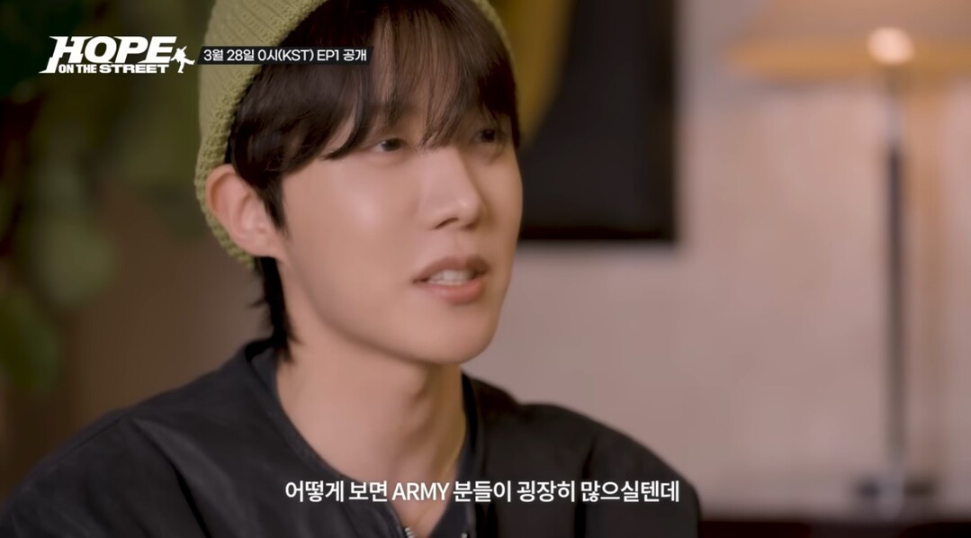 J-Hope, a member of the globally renowned boy band BTS, unveiled a teaser video for his upcoming documentary series titled "Hope on the Street." The teaser, released through the group's official YouTube channel on Monday, features J-Hope seated on a couch adorned in a knitted hat, dark jacket, and jeans.