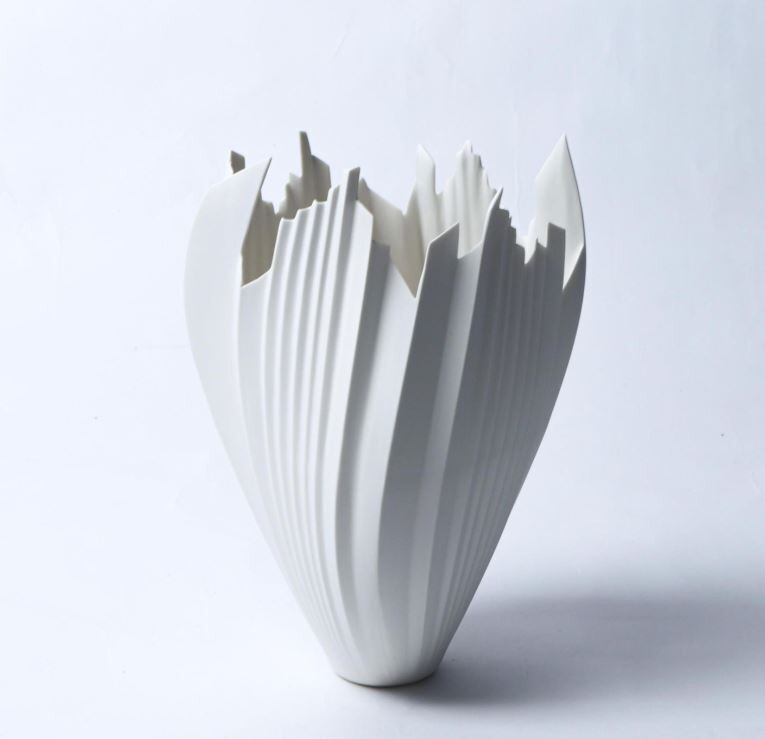 Among standout pieces are Kwon’s jars inspired by classical ceremonial vessels and Shin’s organically pleated vases.