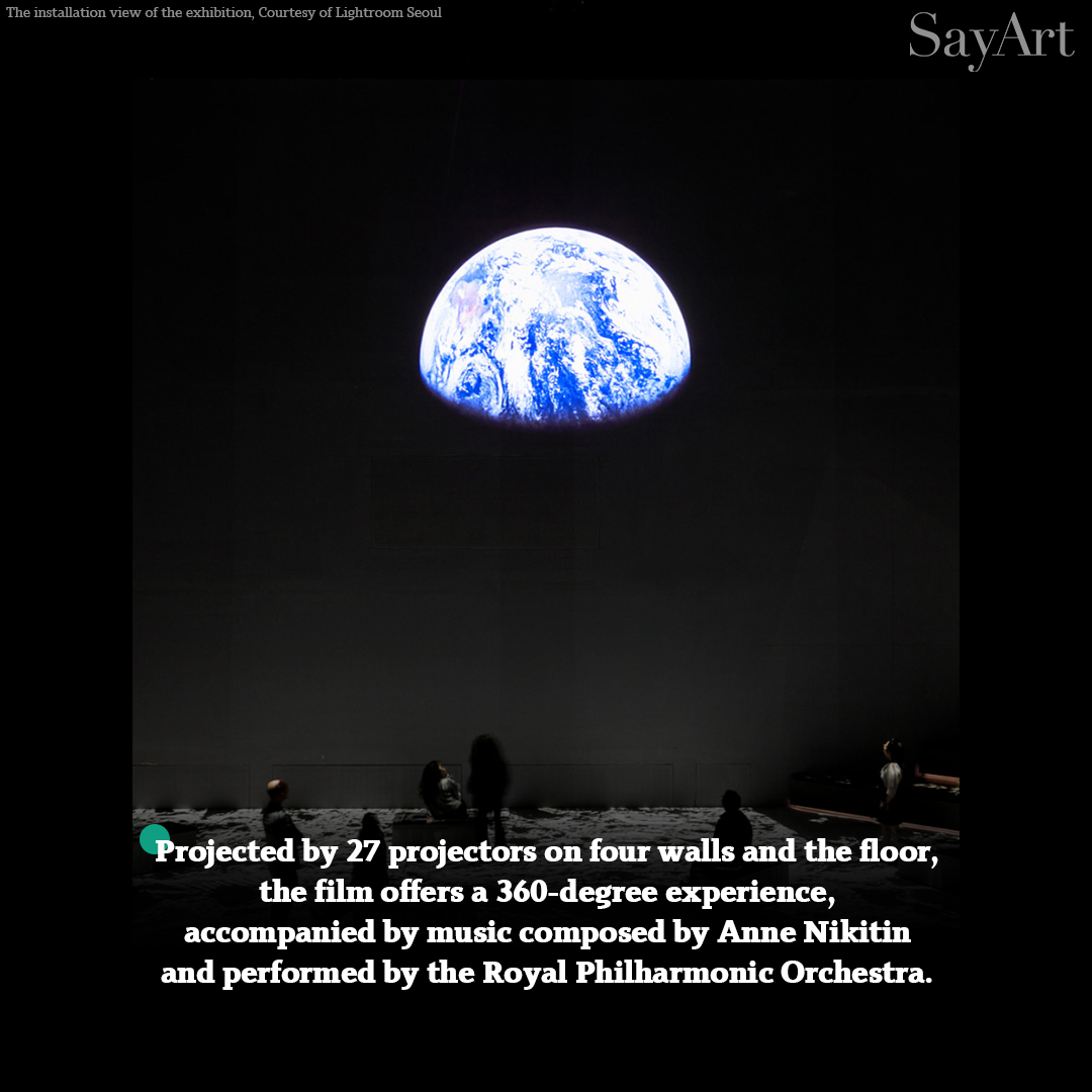 Projected by 27 projectors on four walls and the floor, the film offers a 360-degree experience, accompanied by music composed by Anne Nikitin and performed by the Royal Philharmonic Orchestra.