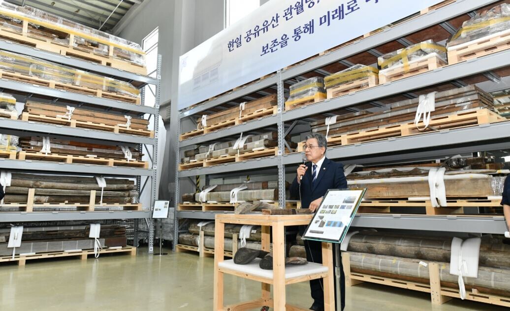 Huh Min, the newly-appointed head of the Korea Heritage Service, speaks during a press conference for the repatriated Gwanwoldang at the Traditional Architecture Elements Conservation Center in Paju, Gyeonggi, on July 23. [KOREA HERITAGE SERVICE]